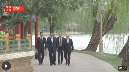 南海中,慢慢清风,潋滟水光。临水而坐两国元首,香茗共品,的政策性题目举办深切换取正在轻松的气氛中就合伙闭怀,夜色深厚平昔道到,手作别才握。