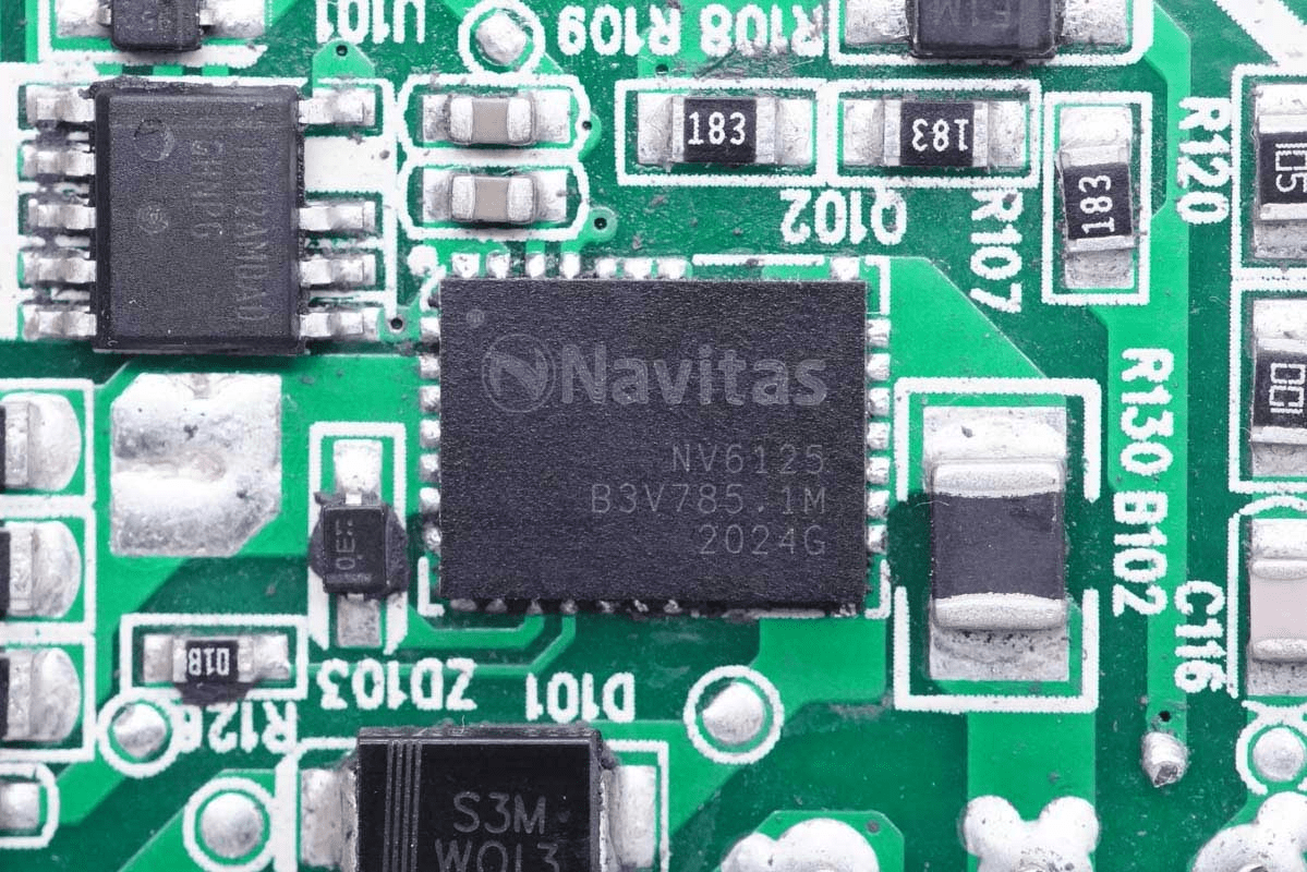 V为PFC升压开合管纳微NV6134N,护电道的氮化镓功率芯片这是一颗集成了驱动和保,升级散热,热焊盘优化温升采用更大的散,GA 65W双口速充采用此前该芯片已被联思YO。