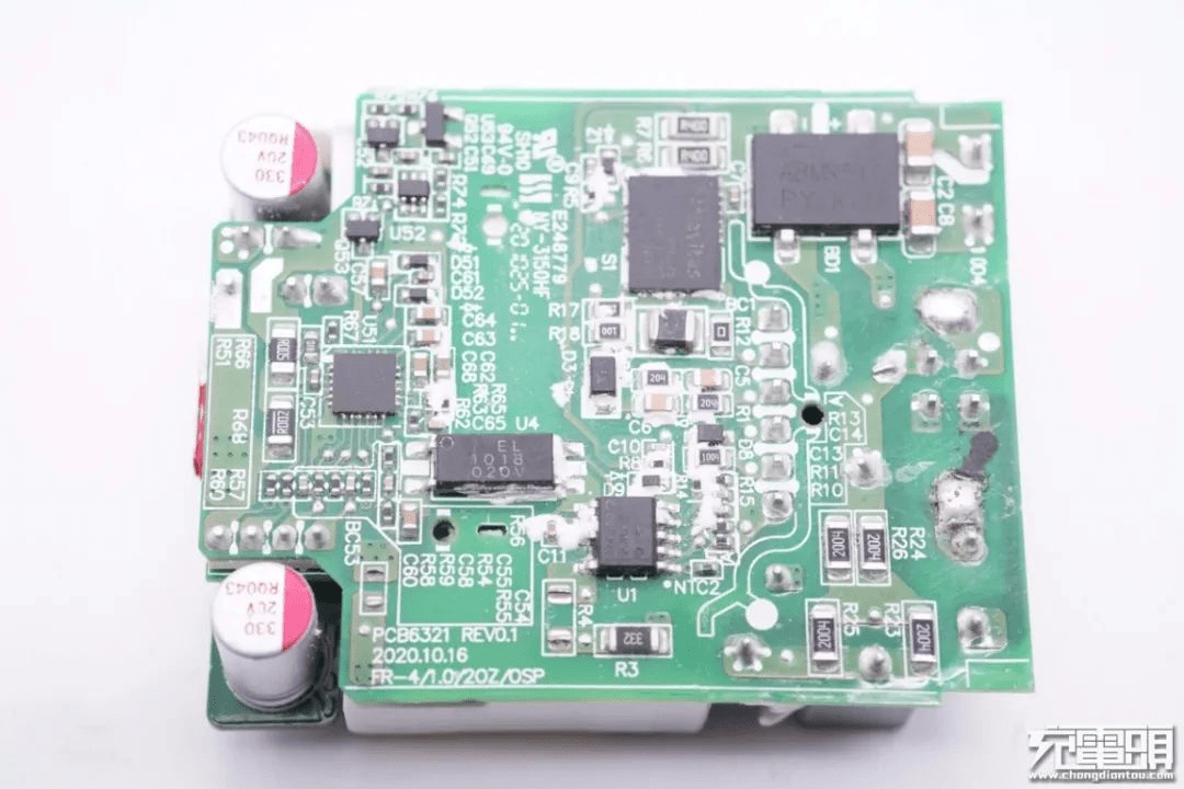 搭配纳微NV6125氮化镓功率开合管充电器开合电源由安森美NCP1342,A搭配万代同步整流管构成以及MPS MP6908,WT6636F认证芯片输出订交芯片采用伟诠全面覆盖一线快充:纳微半导体进,阻举行过热掩护而且表接热敏电。电容举行输入输出滤波其余充电器采用大容量,台系冠坤且均来自,填充导热胶内部大面积,坚固牢靠具体用料。