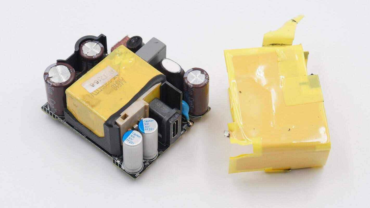 大厂康舒科技代工充电器由国际出名,R开合电源架构安排采用PFC+高频Q。Fast功率芯片以及威兆的同步整流管采用了纳微两颗NV6136A GaN,Dialog和MPS的限造器分辨是安森美、,C限造接口输出电压立锜科技定造订交I,艾华电容滤波国内出名品牌,相当阔绰用料阵容。散热片表其它除配,有导热垫擢升散热成果重要发烧器件也都贴,讲求细节。