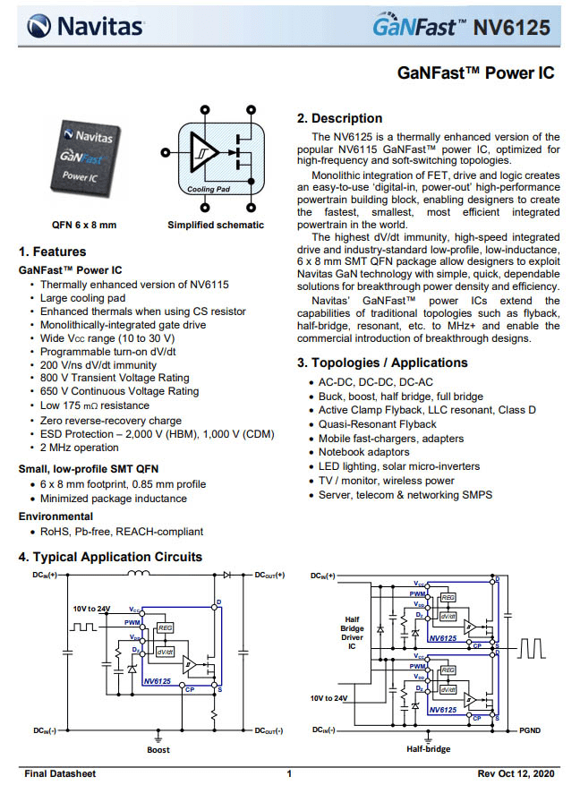 是一颗氮化镓功率芯片纳微NV6127是,FC开合管常用于P,氮化镓驱动器以及逻辑电道内部集成氮化镓开合管、,纯洁利用。