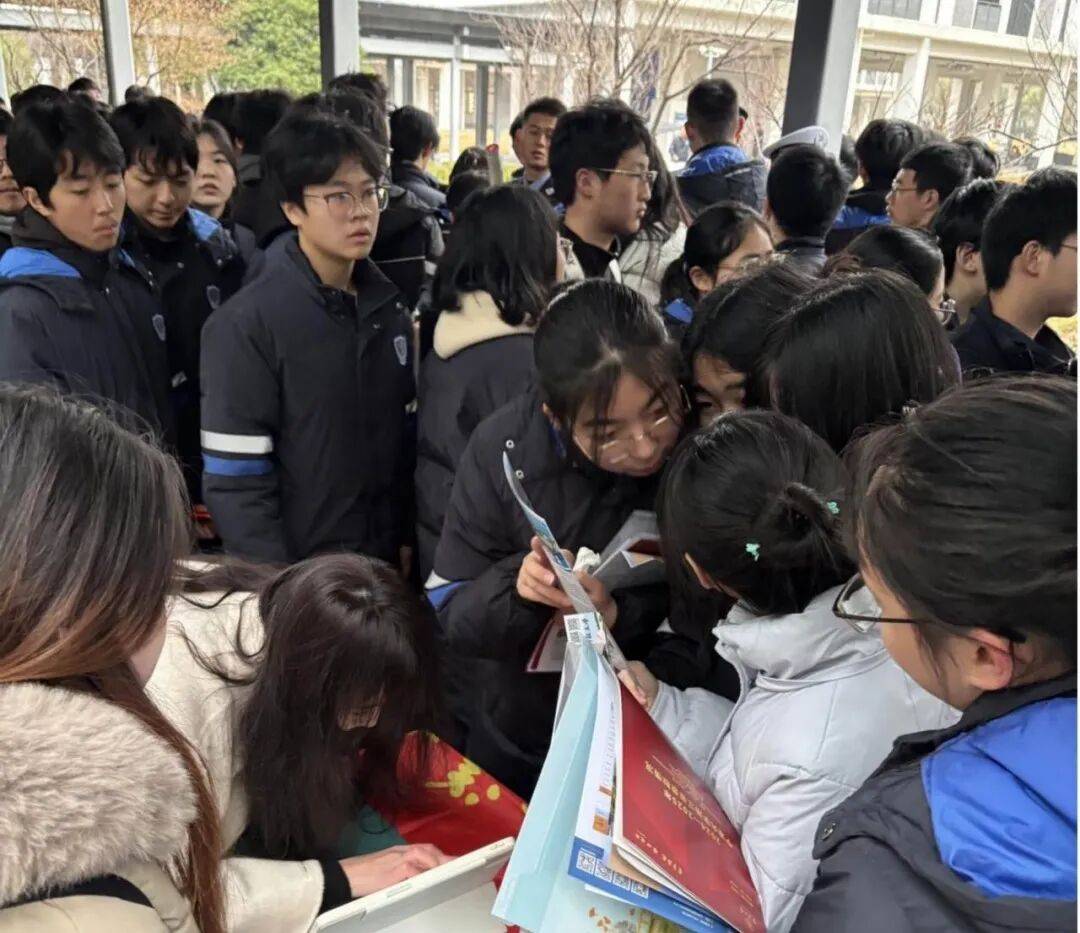 日上午11时30分2026年2月6,奉化中学正门会合团队成员准时正在,与母校合影纪念张开勾当横幅。时整12,物资进入校园成员们率领,指定位子敏捷安置好摊位正在高三教学楼西北侧连廊,速吸引了多量学弟学妹驻足能干的浙江海洋大学标识迅。